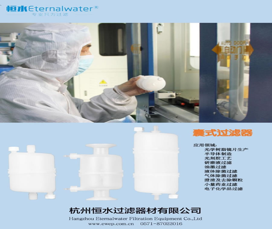 囊式過濾器又稱一體式過濾器,外殼采用進口聚丙烯材質(zhì),里面濾芯為小型折疊濾芯一起焊接而成,為一體式過濾器,無任何粘合劑和化學物質(zhì)。過濾器體積小,過濾介質(zhì)損失小,不用安裝濾芯,軟管連接即可過濾。廣泛應(yīng)用于實驗室小量過濾,生物制藥液體過濾,光學鏡片單體過濾,光刻膠過濾,研磨液過濾,鋰電池漿液過濾等。